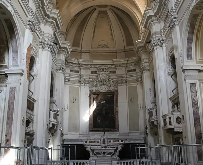 The crowned Dolphin, emblem of the City, towers above the altar; below it lies a grand canvas painted by Carlo Sacconi, depicting the people kneeling as they invoke the grace of the Virgin Mary. Also of note is a painting by Baldassarre Franceschini, known as 'Il Volterrano,' showing Saint Charles Borromeo administering the Eucharist to plague victims. The church is currently closed.