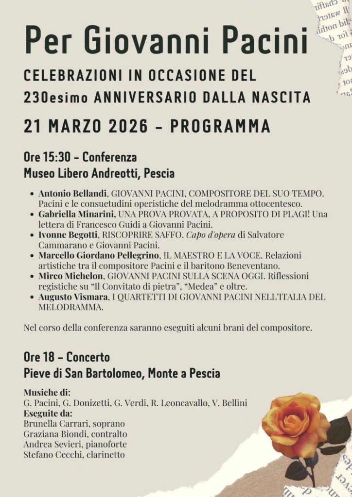 Conferenza in occasione dei 230 anni dalla nascita del Maestro Giovanni Pacini presso il Museo Libero Andreotti