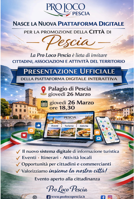 Proloco Pescia ti invita alla presentazione ufficiale del nuovo sito dedicato alla promozione turistica e commerciale di Pescia.