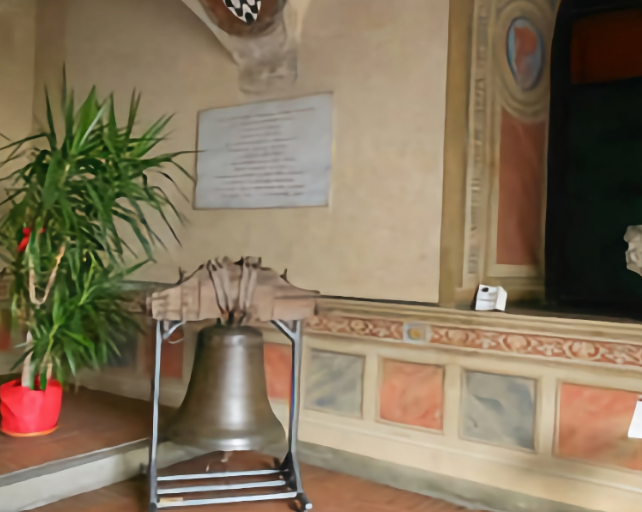 In the center of the wall opposite the entrance is a small altar. In the alcove above it is a fresco depicting the Madonna col Bambino e Santi (Madonna and Child with Saints), dating back to the 17th century and originally from the Seminary Tower. Recently, the medieval Municipal Bell (1472), which once stood at the top of the Palace, was placed inside the Memorial. Campana Comunale (1472) once stood at the top of the Palace.