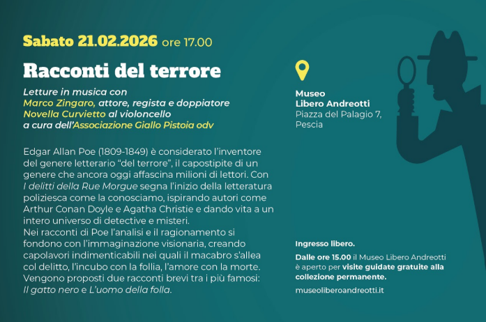 Il Sistema Museale Pistoiese – SIMUP, in collaborazione con l’Associazione Giallo Pistoia odv, propone “Giallo al Museo”, un ciclo di cinque appuntamenti dedicati alla scoperta di enigmi e misteri.