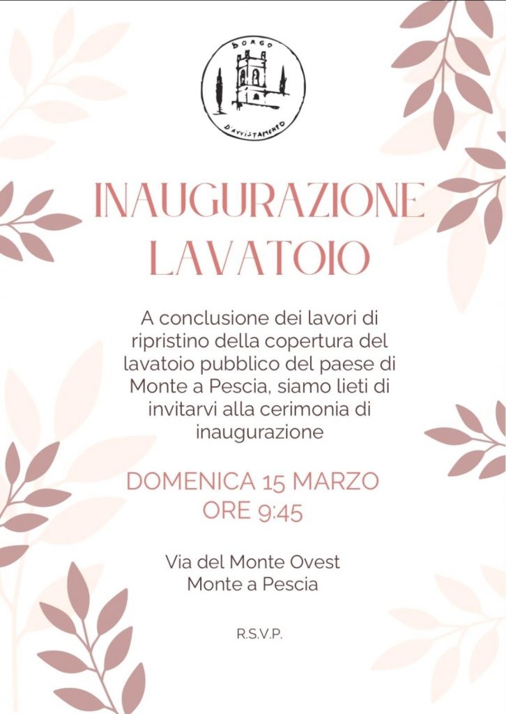 « Tutti gli Eventi Monte a Pescia – Il Lavatoio Marzo 15 @ 9:45 – 11:00 Cerimonia di inaugurazione del LAVATOIO pubblico di Monte a Pescia Salva nel tuo calendario Google Calendar iCalendar Outlook 365 Outlook Live